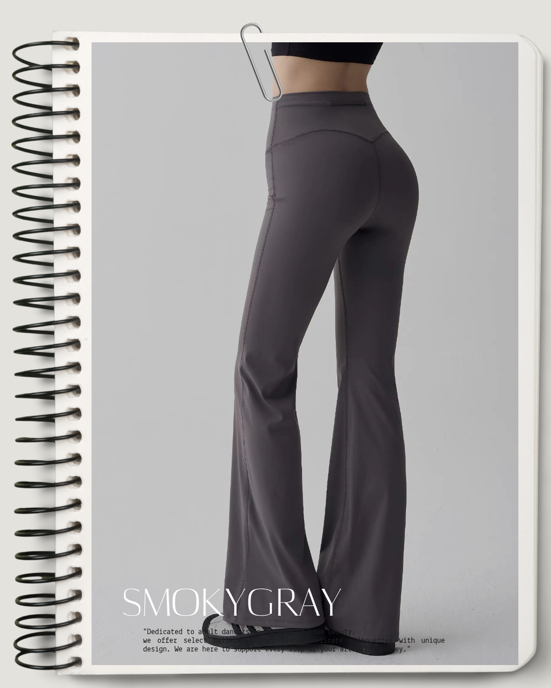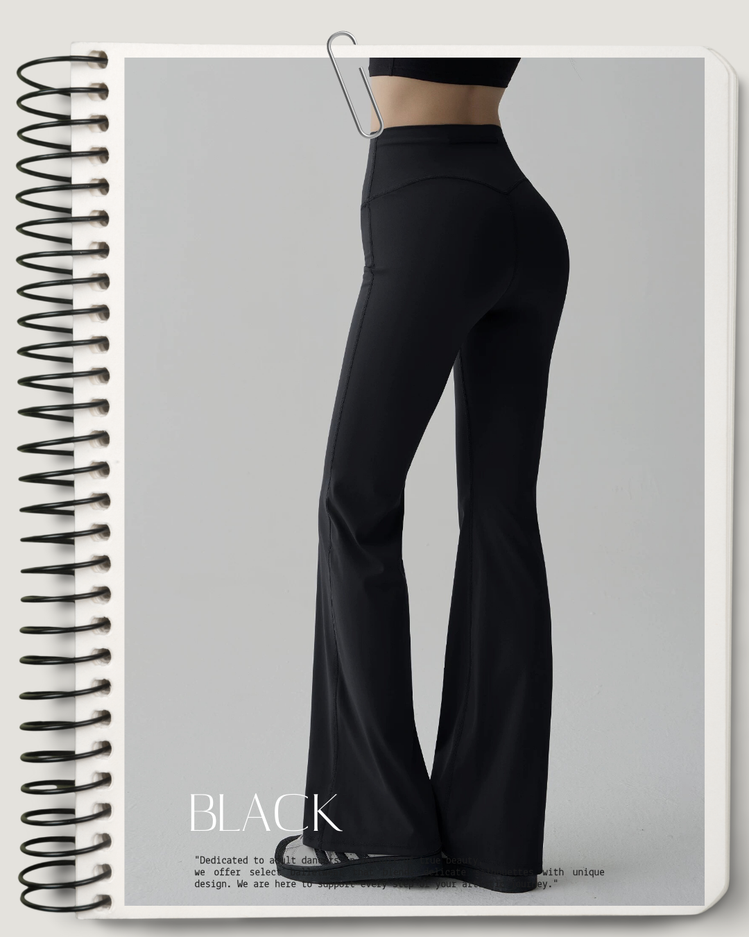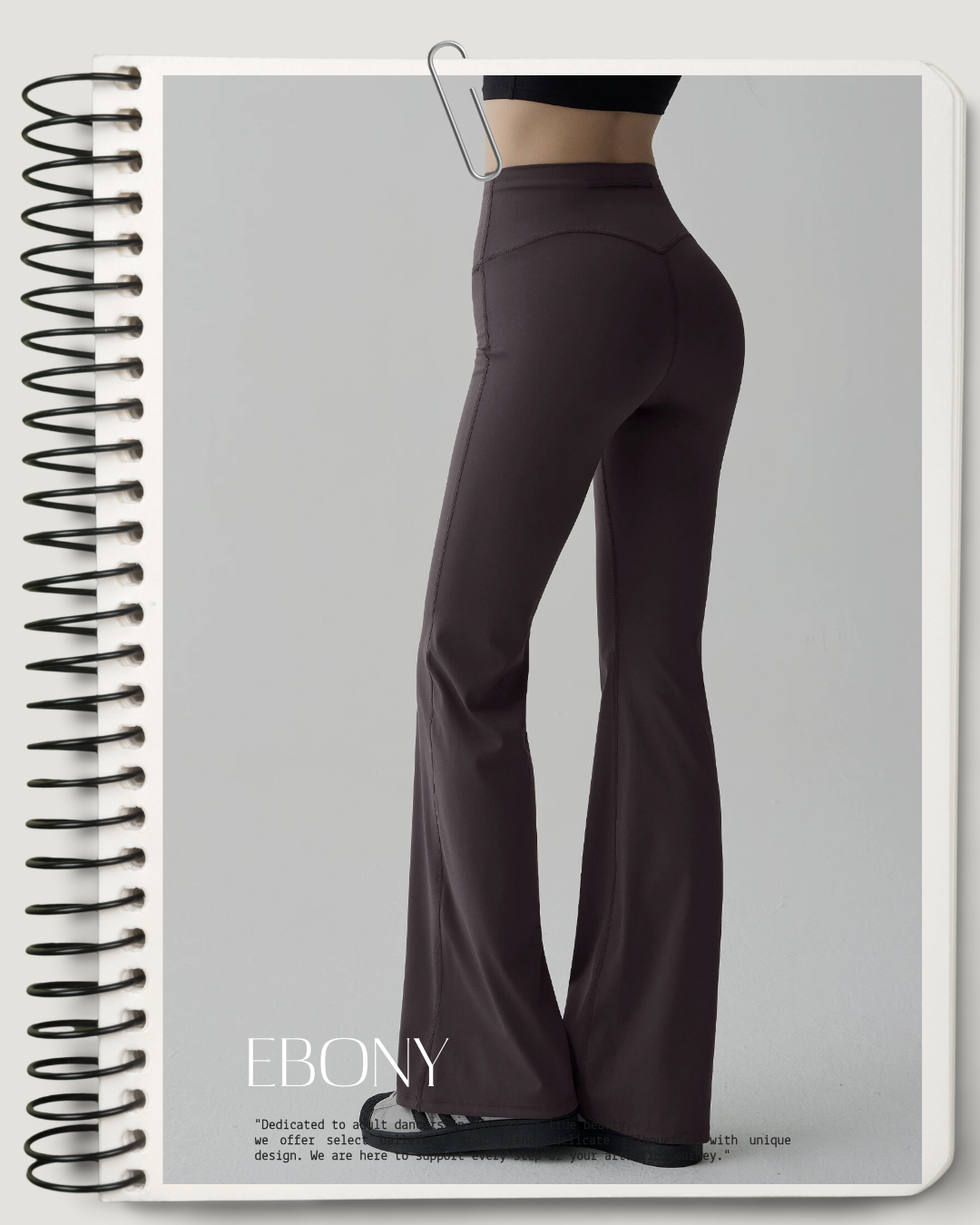 ウエストにドローストリングをあしらったフレアシルエットのパンツ。腰まわりはすっきりと、裾に向かって自然に広がるラインが全体のバランスを整えます。レッスン時はもちろん、リラックス感のあるスタイリングにも取り入れやすい一枚です。