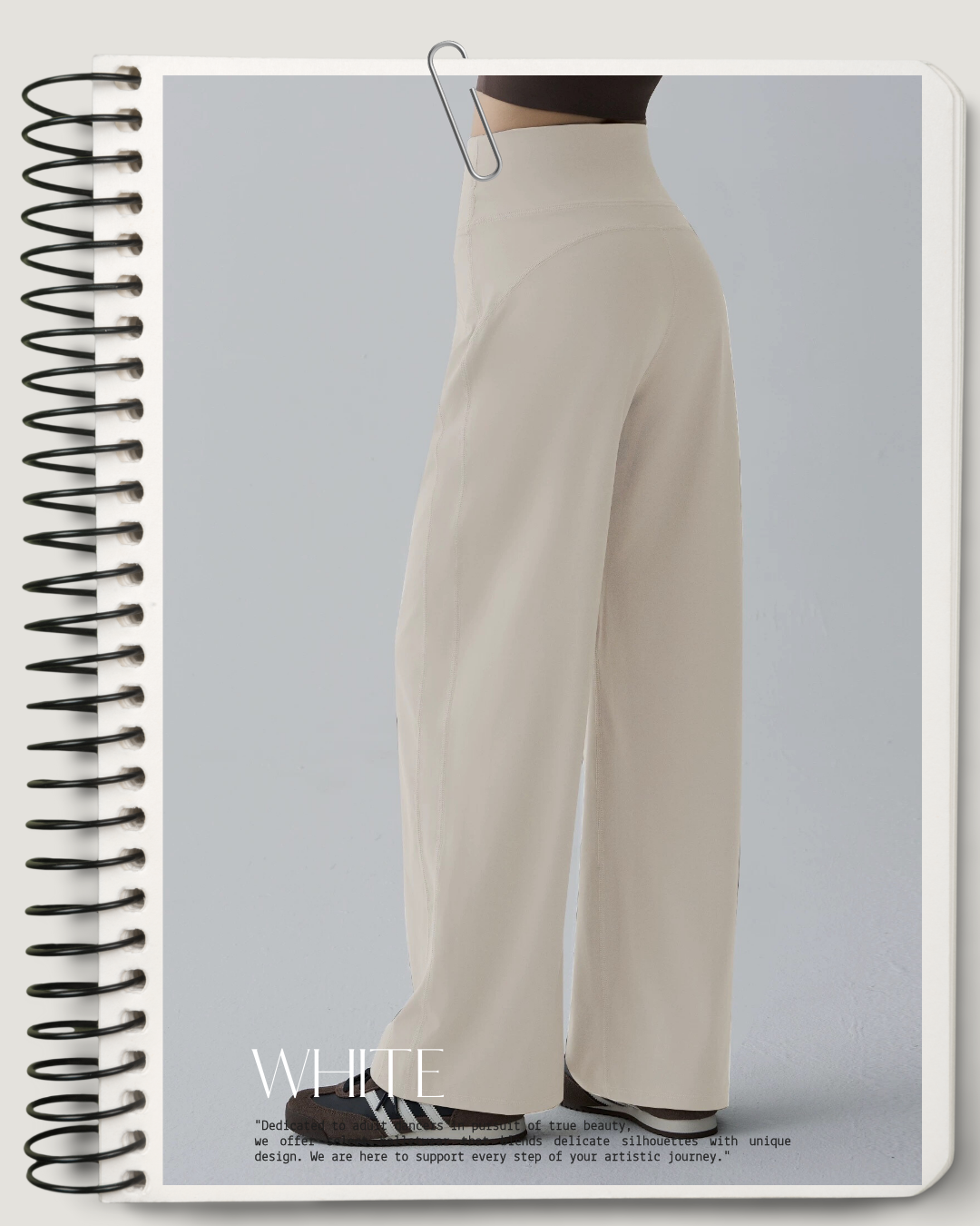 しなやかな落ち感が脚のラインを美しく見せる、バレエシーンに映えるワイドシルエット。安定感のあるウエスト設計で、レッスン中の動きにも自然にフィットします。バレエレッスンから日常まで馴染む、軽やかな一本です。