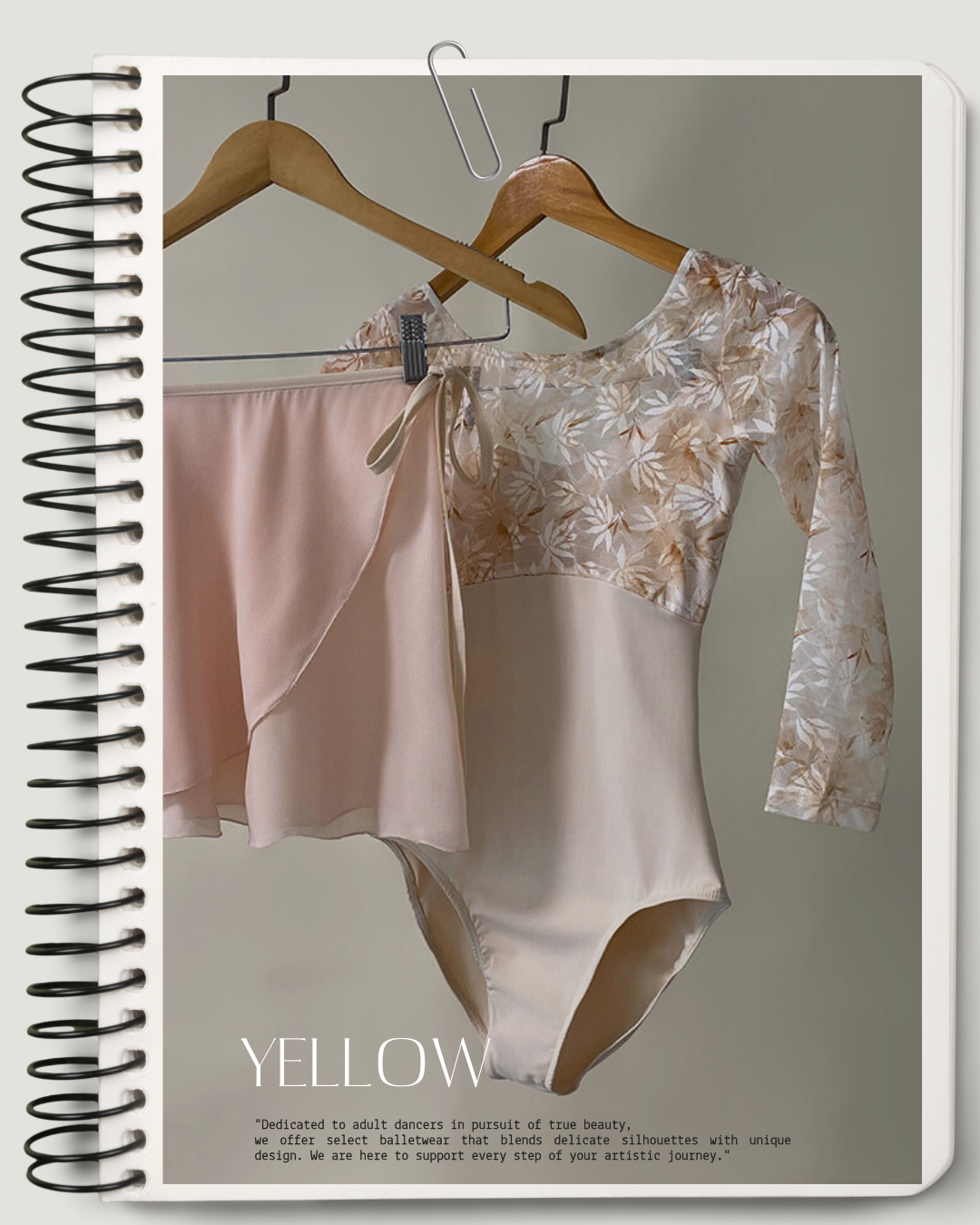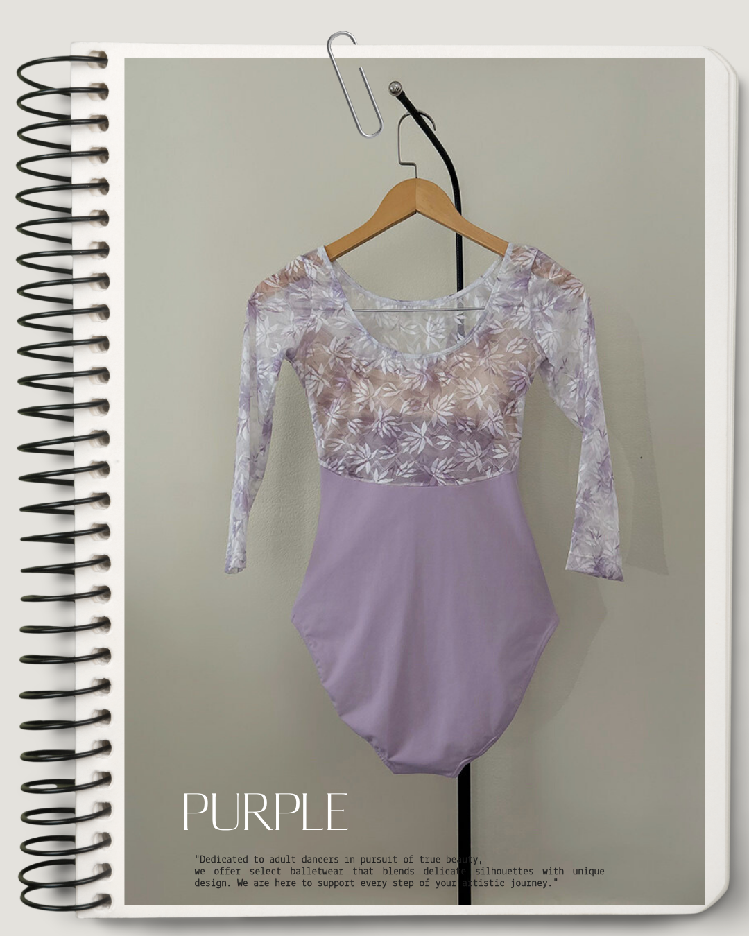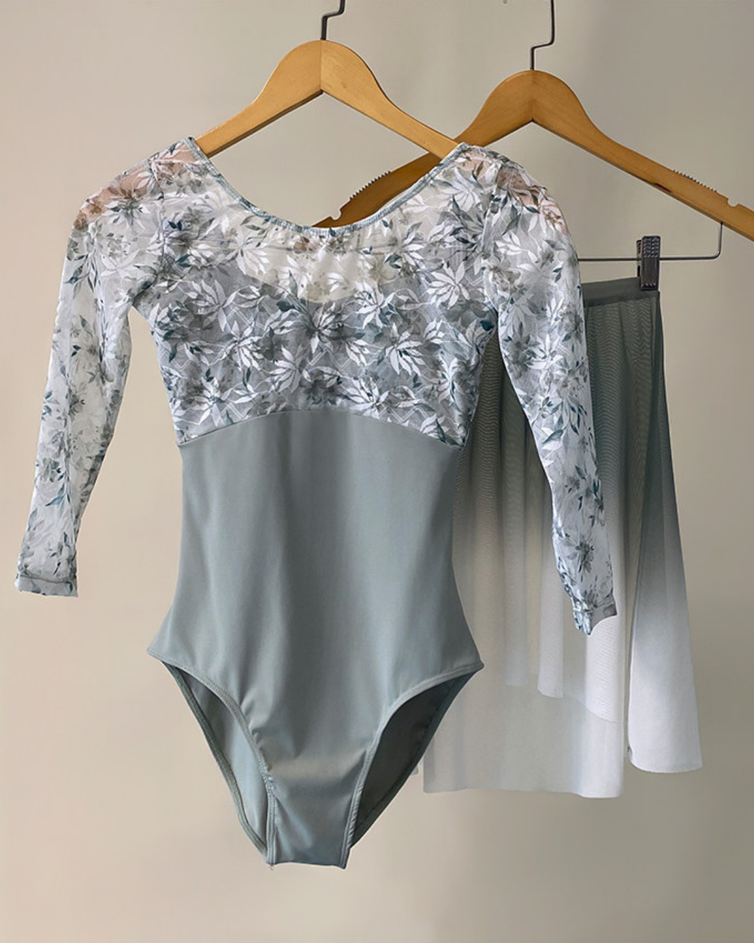 フラワー柄のシアー素材をトップに重ねた上品なデザインのバレエレオタード。デコルテを美しく見せるネックラインと切り替えシルエットが大人っぽい印象を引き立てます。レッスンからリハーサルまで華やかさを添える一枚です。