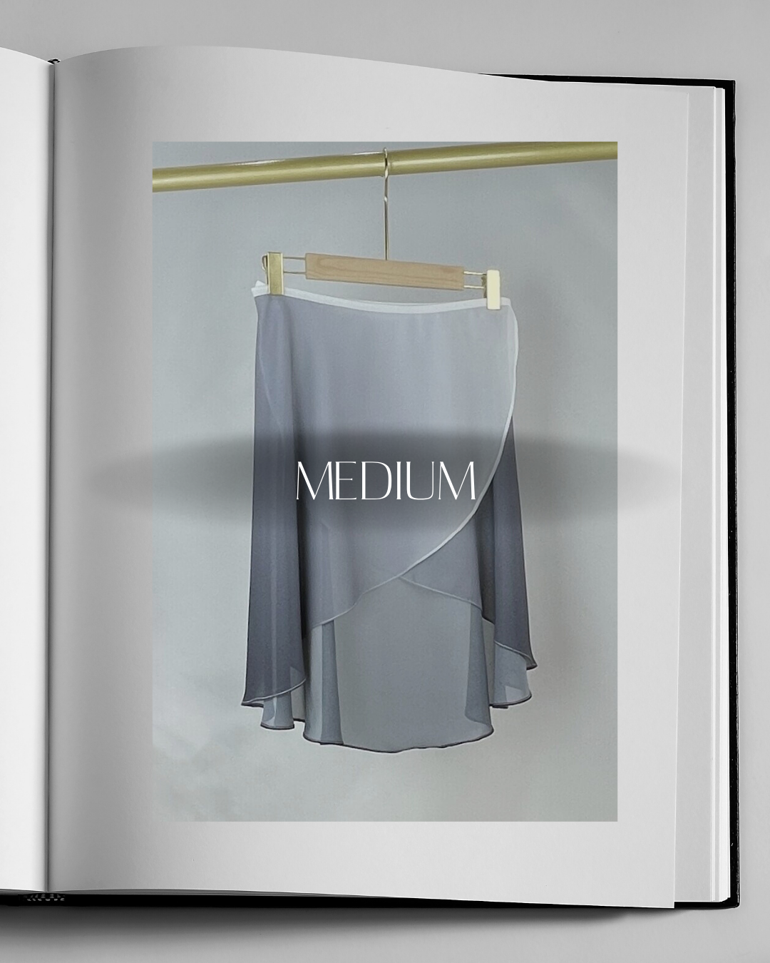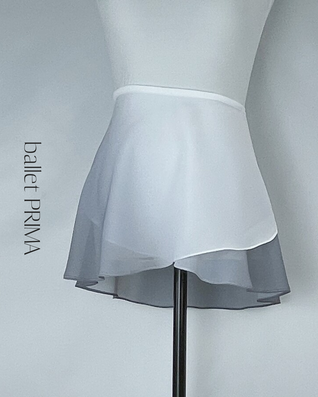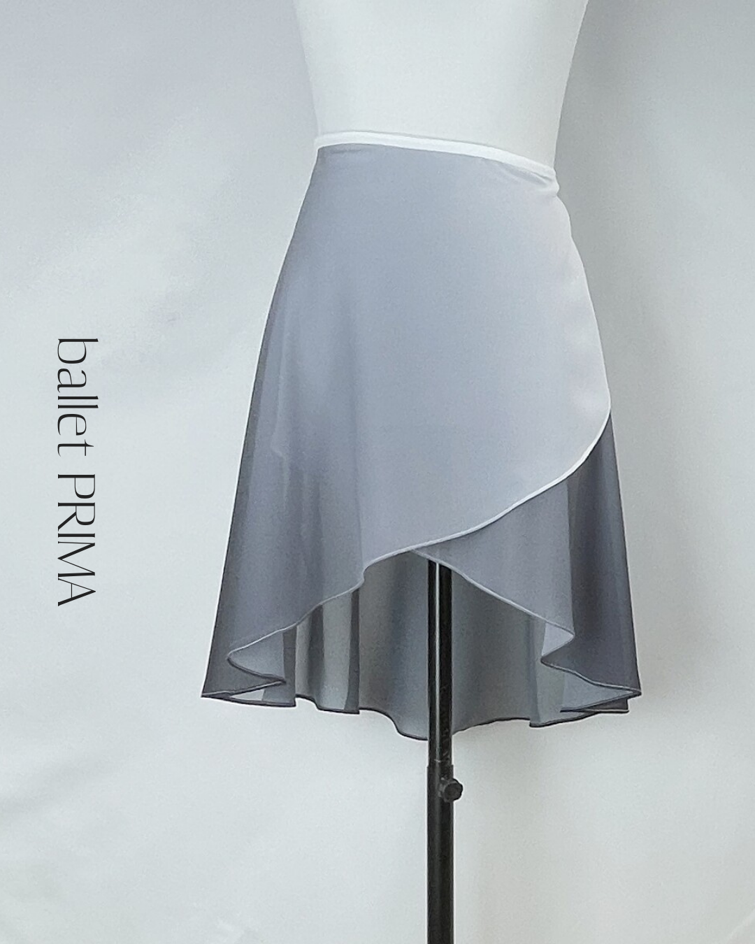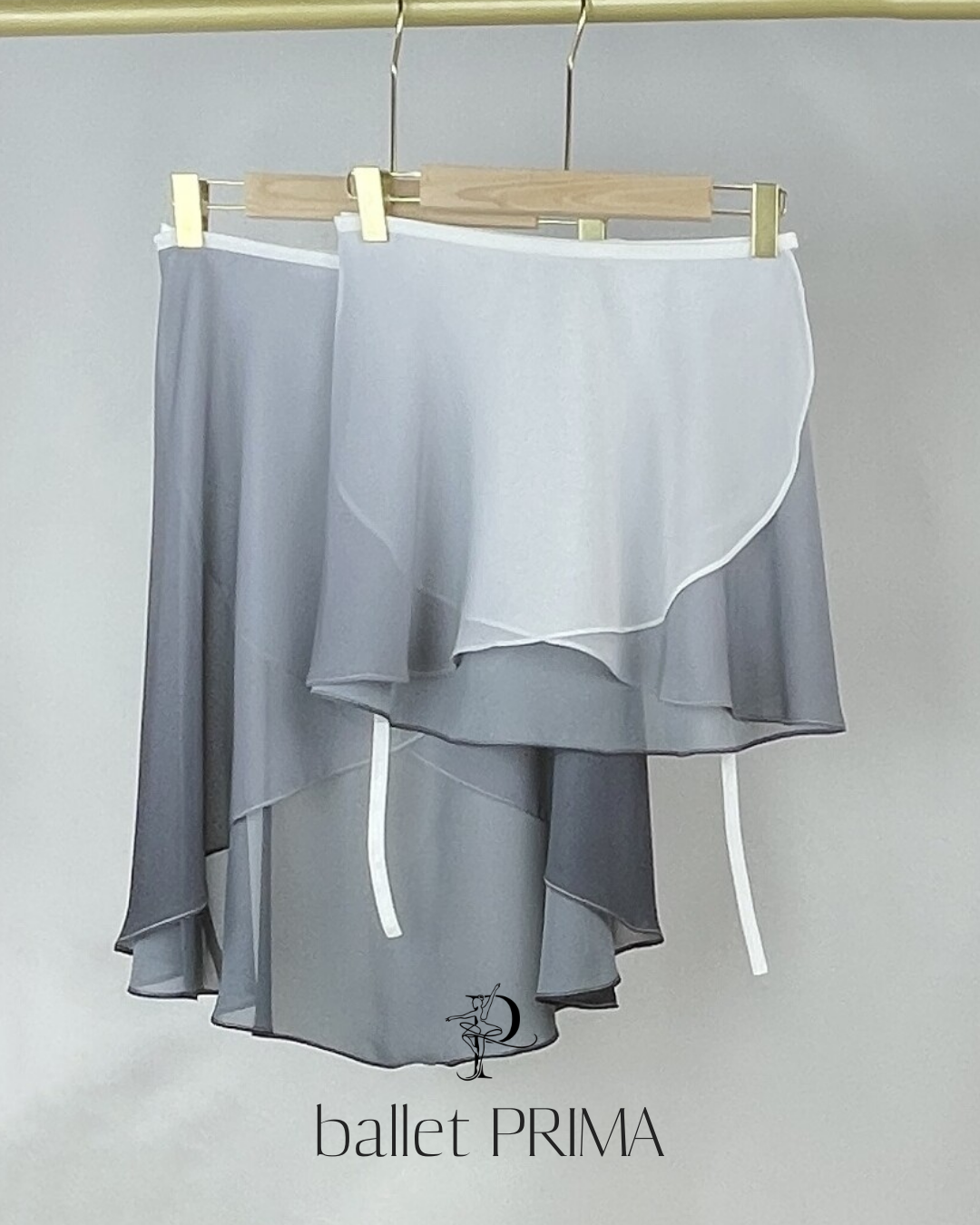 なめらかなグラデーションカラーが目を惹くアシンメトリーラップスカート。軽やかに揺れるシングルレイヤーのシルエットで、ショート丈・ミディ丈の2タイプ展開。レッスンから舞台までバランスよく取り入れやすい一枚です。