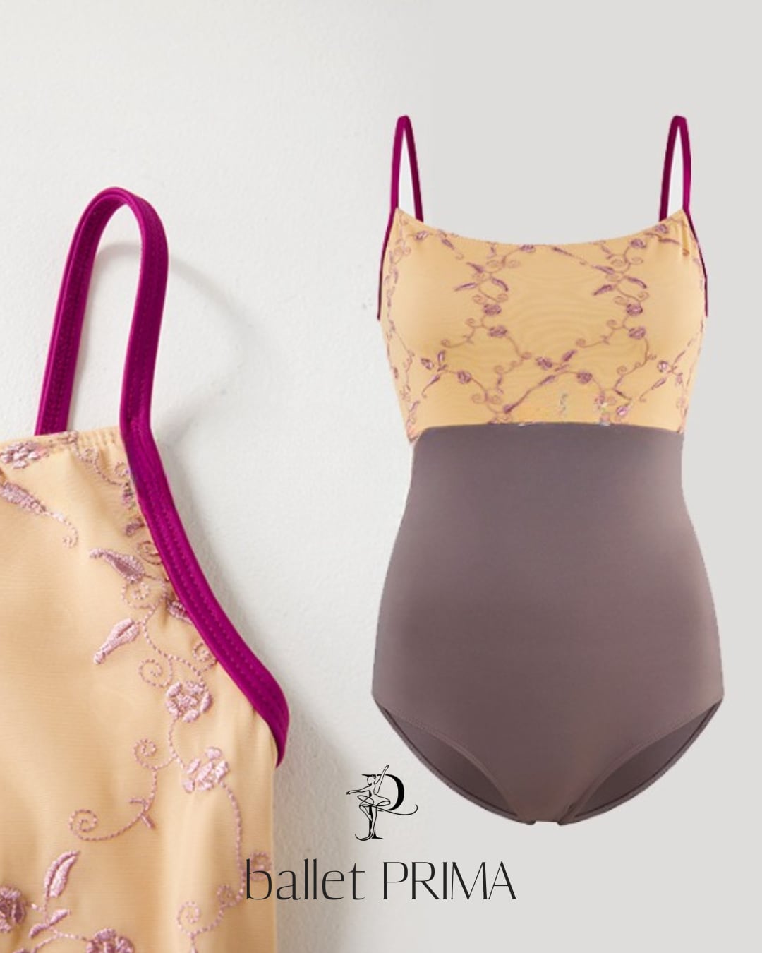 バイカラーと刺繍のフラワーパターンが上品で大人っぽい、すっきりシンプルなデザインが印象的なレオタードと、ウエストリボン付きのラップフレアスカートの2点セットです。レッスンや特別な日のコーディネートにぴったりのアイテムです。あなたのバレエスタイルを一層引き立てます。