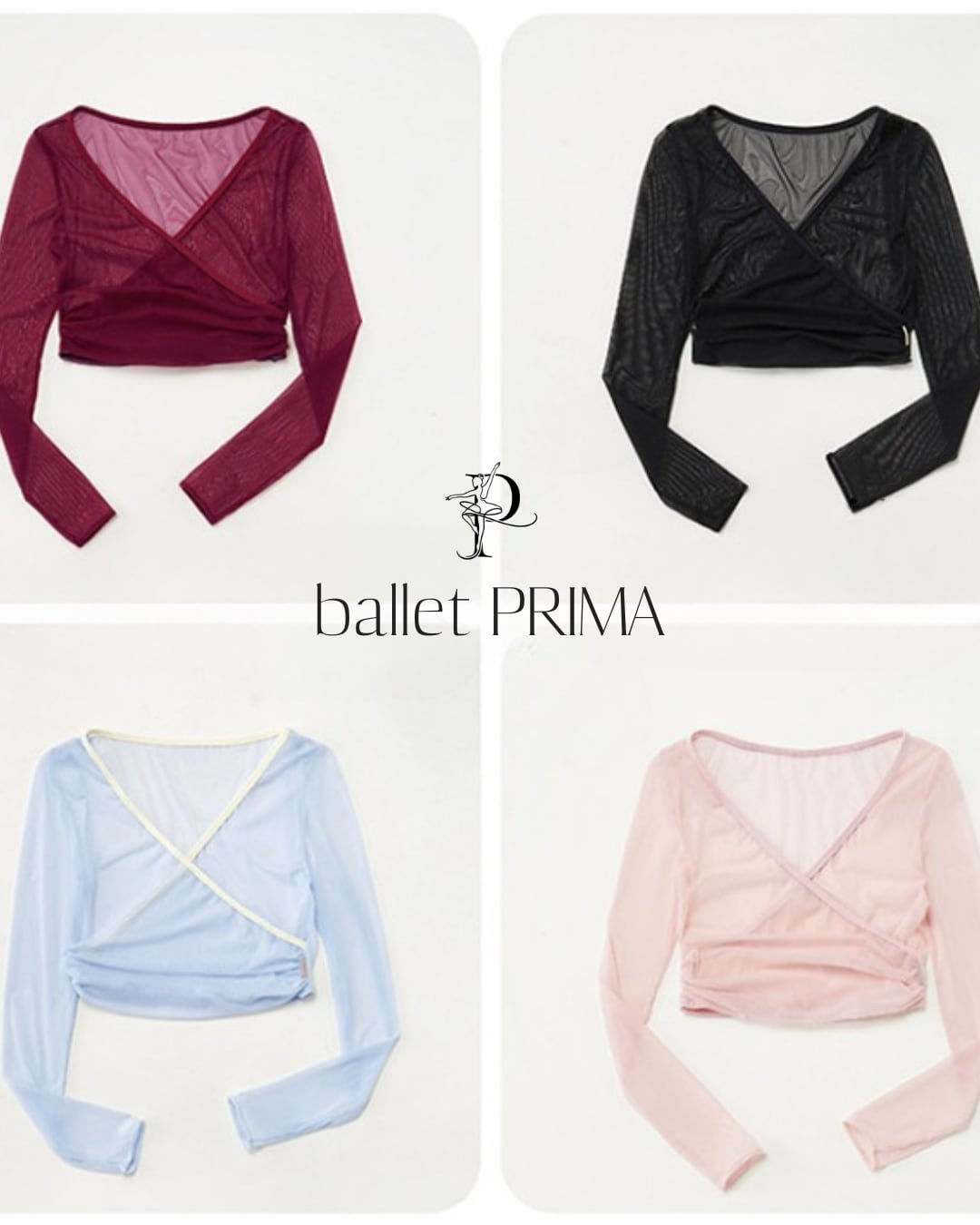 カシュクールのフロントクロスがデコルテ周りをきれいに見せるシアーメッシュトップスは、快適さとスタイリッシュさを兼ね備えたアイテムです。レイヤードスタイルにさっと取り入れるだけでカジュアルな日常や特別なシーンにも最適!あなたのバレエコーディネートに華やかなアクセントを加えます。