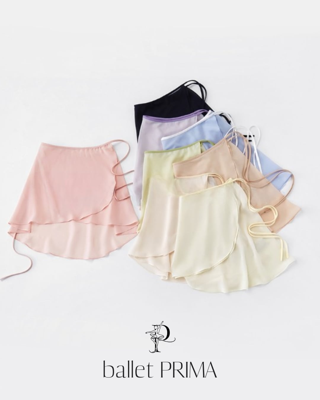 華奢なウエストリボンがさり気なく上品で、マルチパターンが華やかなラップタイプのショート丈スカートです。リボンのディテールが華やかさをプラスし、特別な日や日常のレッスンにぴったりのアイテム!あなたのバレエスタイルに一層の洗練を演出します。