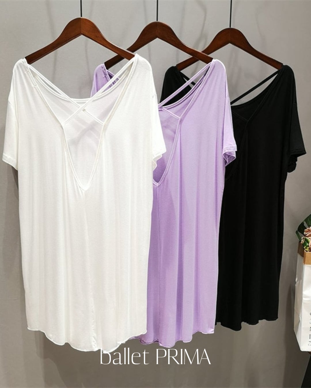 バッククロスのオープンデザインが特徴の、ゆったりおオーバーサイズで着回しやすいトップスセットです。定番の3色のカラー展開があり、コーディネートに合わせやすいアイテムとして、シンプルながらもおしゃれな印象を与え、様々なシーンで活躍すること間違いなしです!あなたのバレエコーディネートに華やかなアクセントを加えます。