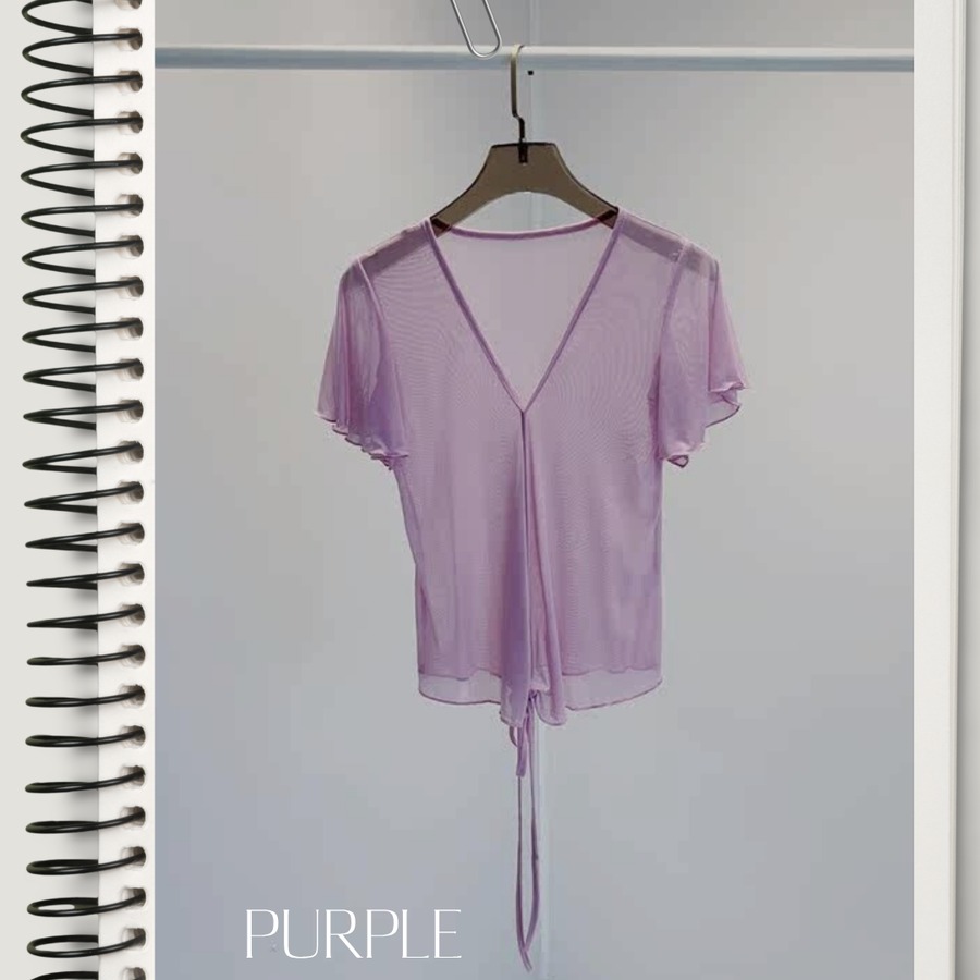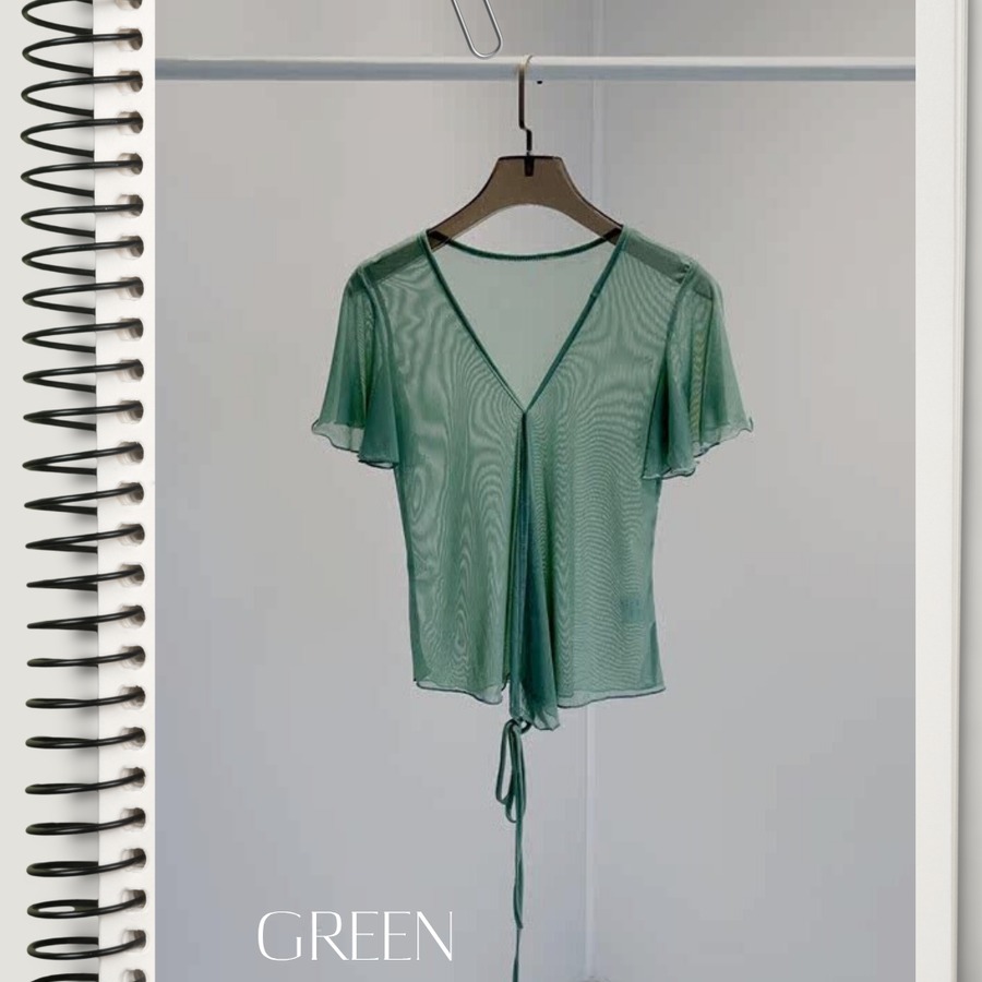 【お得なSET商品】V-neck Sheer Shirred Tops Set 5color P0429
